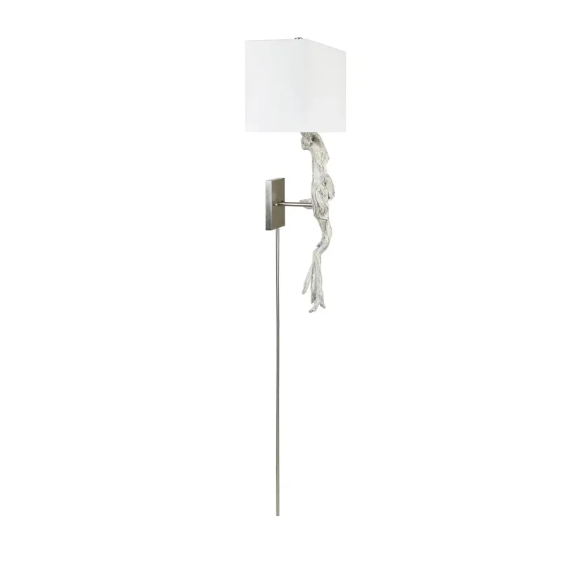 The Crestview Collection Beachcomber Wall Sconce, cast in resin from a real driftwood fragment, features a stunning sun-bleached finish. This functional piece of sculpture exudes an organic, beachy vibe, making it the perfect accent to bring coastal charm to your space.
