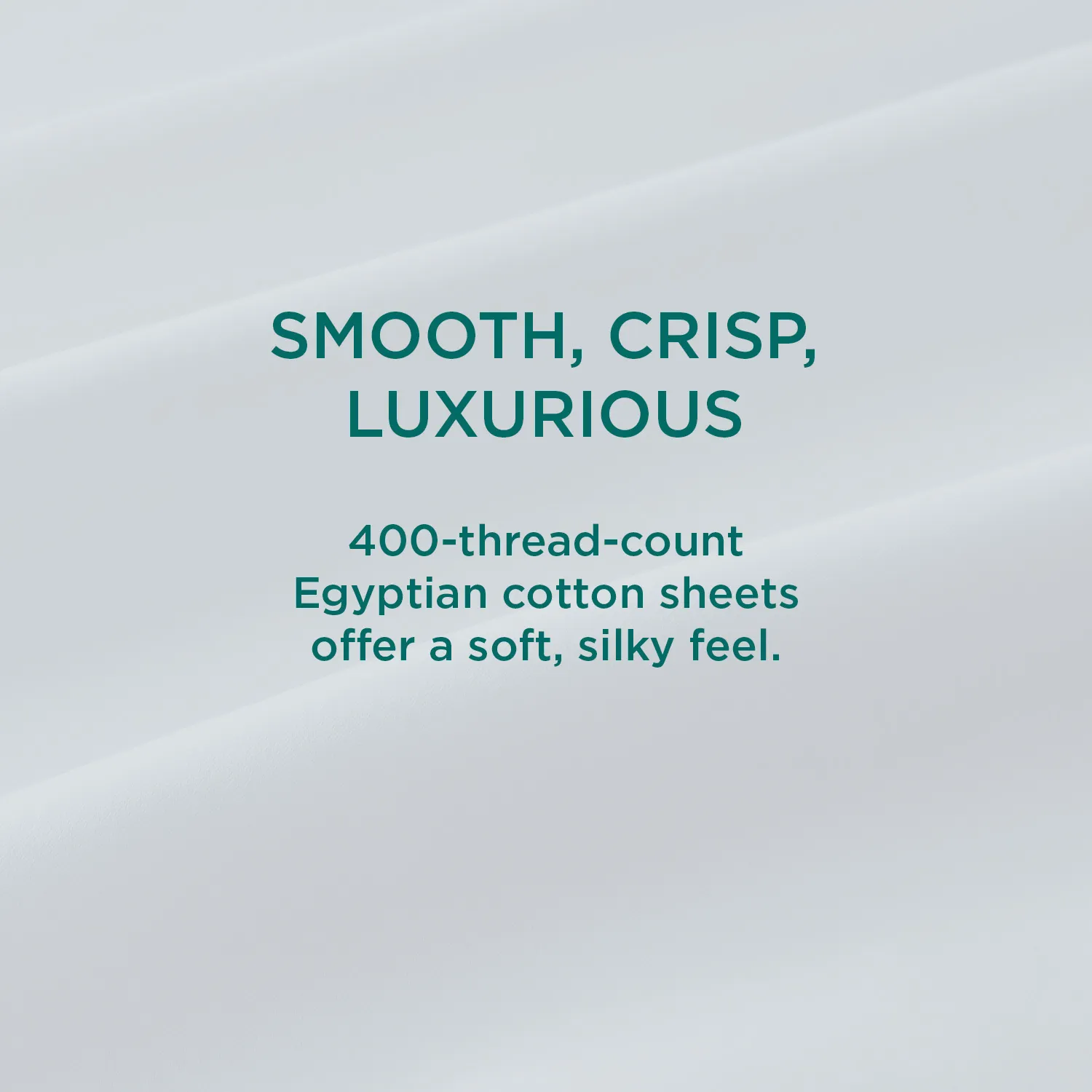 Smooth. Crisp. Luxurious. These 400-thread-count long staple Egyptian cotton sheets offer a soft, silky feel, giving every bed a crisp, smooth look. The enhanced fit—including our unique fitted sheet with four-way stretch and StayTight™ bands for a snug, secure fit that stays put—perfectly complements your Tempur-Pedic® mattress. Available in White, Sandstone, Sleepy Blue, Silver Mist, and Cool Gray