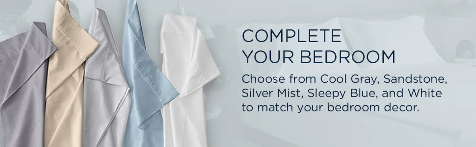 Smooth. Crisp. Luxurious. These 400-thread-count long staple Egyptian cotton sheets offer a soft, silky feel, giving every bed a crisp, smooth look. The enhanced fit—including our unique fitted sheet with four-way stretch and StayTight™ bands for a snug, secure fit that stays put—perfectly complements your Tempur-Pedic® mattress. Available in White, Sandstone, Sleepy Blue, Silver Mist, and Cool Gray