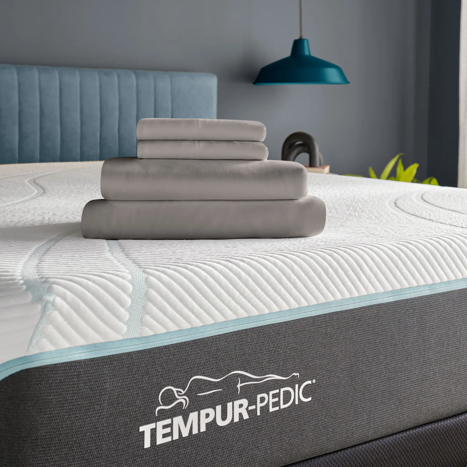 The ultimate match for your Tempur-Pedic® (Alt: Perfect fit. Peak performance.) Our most moisture-wicking sheets ever, made from premium, high-stretch, knit fabric that draws moisture away from your body to keep you sleeping comfortably. These sheets are optimized to perfectly complement your Tempur-Pedic® mattress, with fourway-stretch knit and our signature StayTight™ bands for a snug, secure fit, night after night—no bunching, no creeping corners, and no readjusting needed. Available in White, Sleepy Blue, Sandstone, or Graphite.
