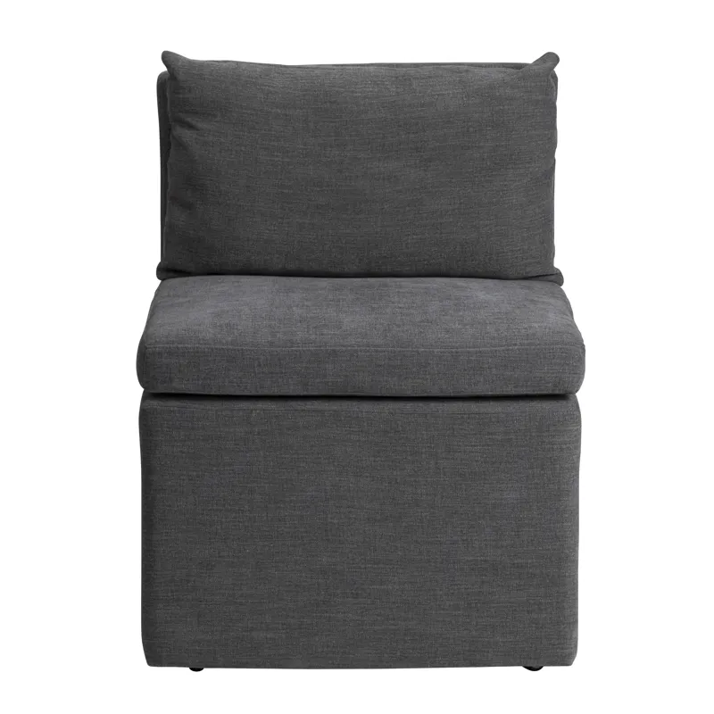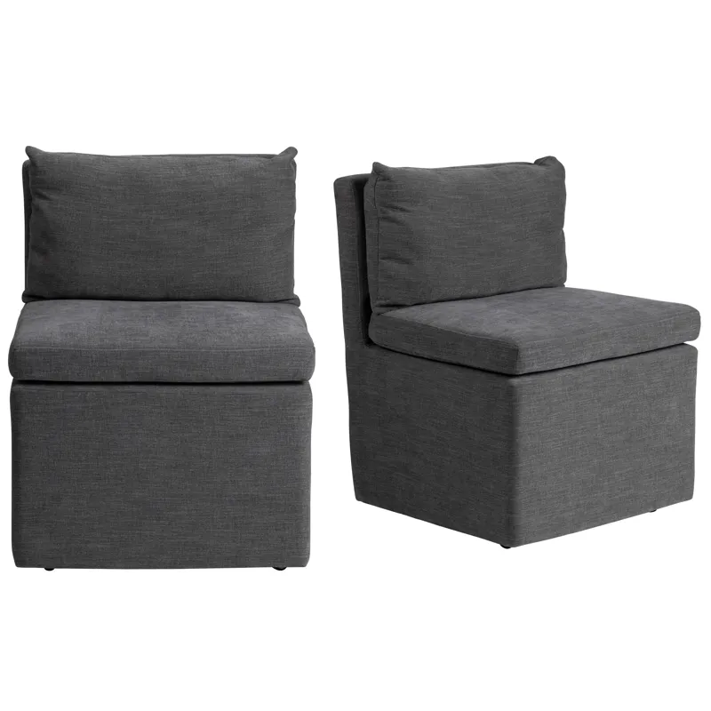 Designed for relaxed, mix‑and‑match dining, this dining chair pairs sleek cube lines with cloud‑soft cushions wrapped in a charcoal performance fabric that resists stains and fading. The armless profile tucks neatly under tables or anchors a banquette, while the removable slipcover fastens with hidden velcro for easy cleaning or a quick style change. A kiln‑dried hardwood frame and sinuous‑spring seat cradle guests in lounge‑worthy comfort through game nights, homework sessions, and Sunday brunch. Arrives fully assembled—just unbox and gather.