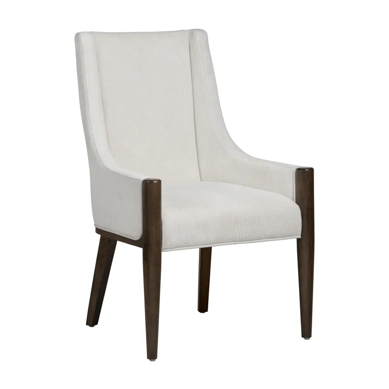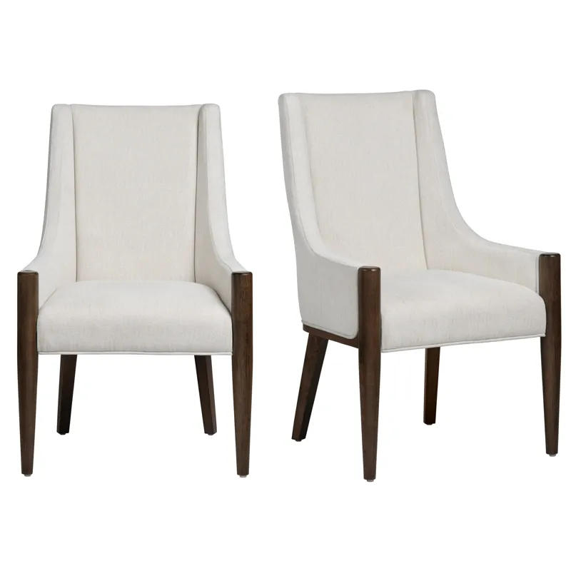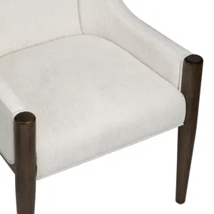 Elevate everyday meals with this scoop‑back armchair, where tailored upholstery meets sculpted walnut legs. A gently flared silhouette cradles you in plush, high‑density cushioning, while stain‑resistant performance linen keeps its crisp ivory look through spills and celebrations alike. Slide one to each table end for head‑of‑the‑table presence—or gather a full set for a dining room that feels instantly refined.
