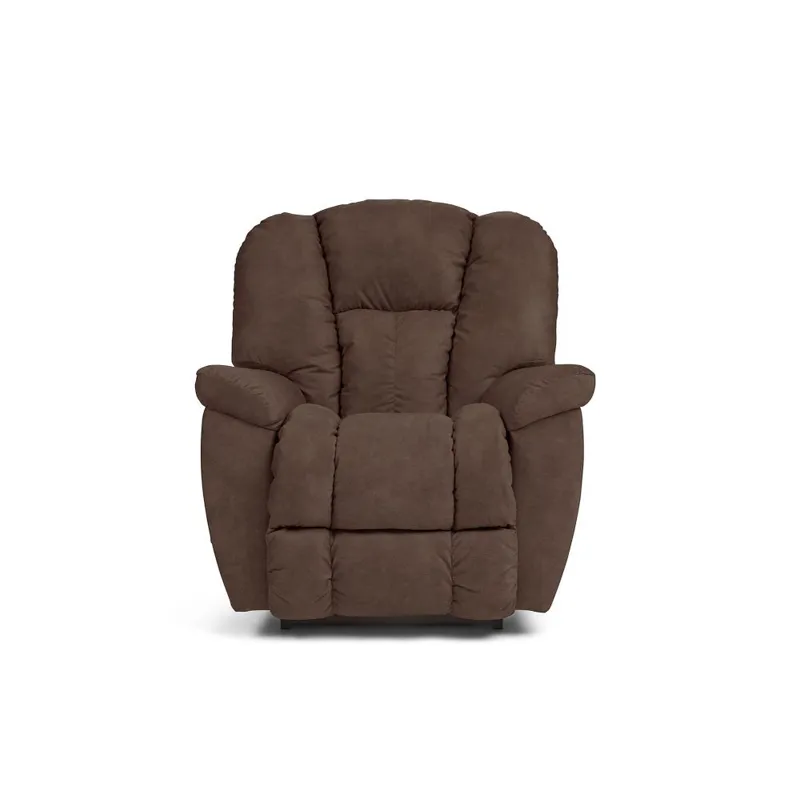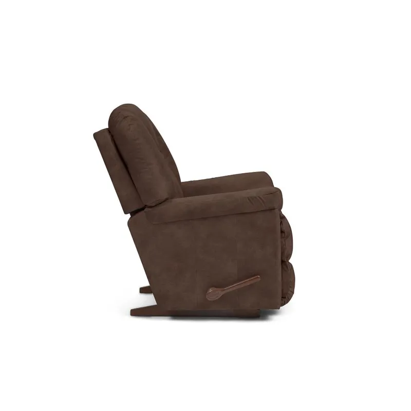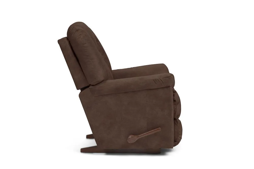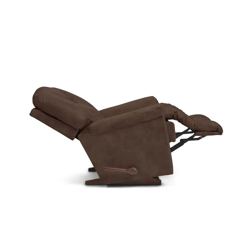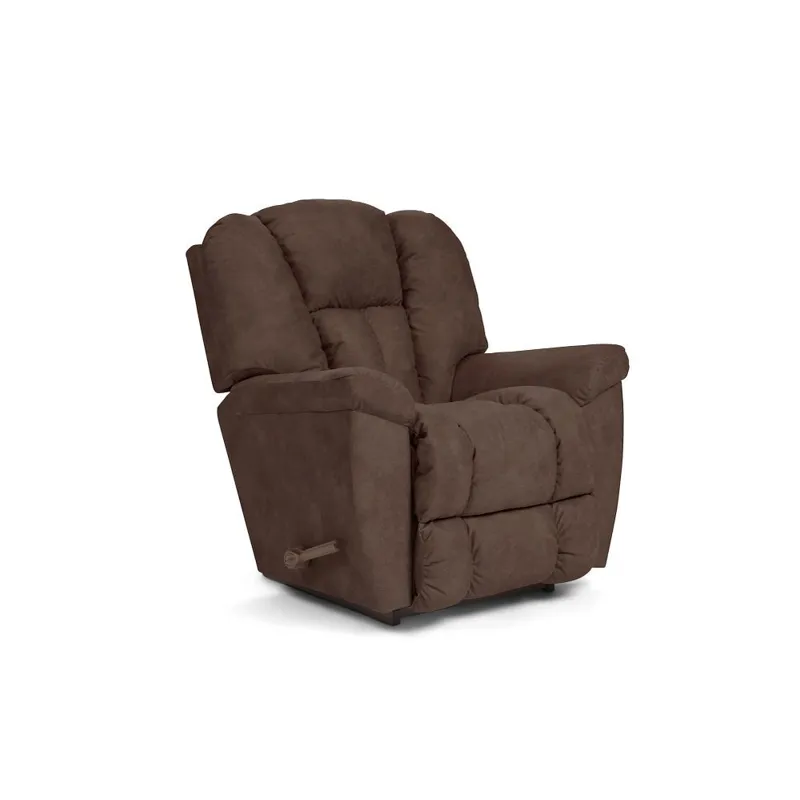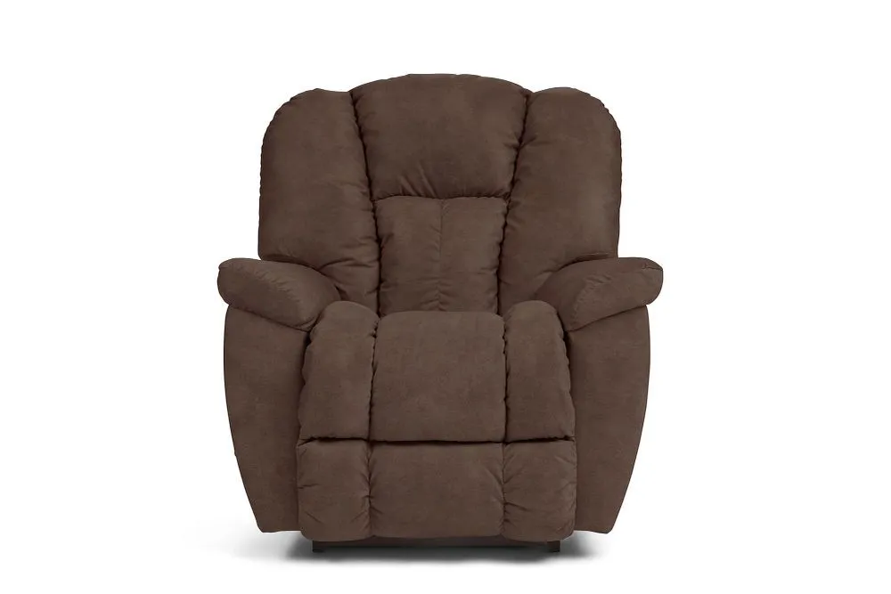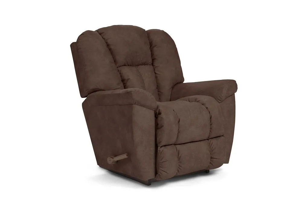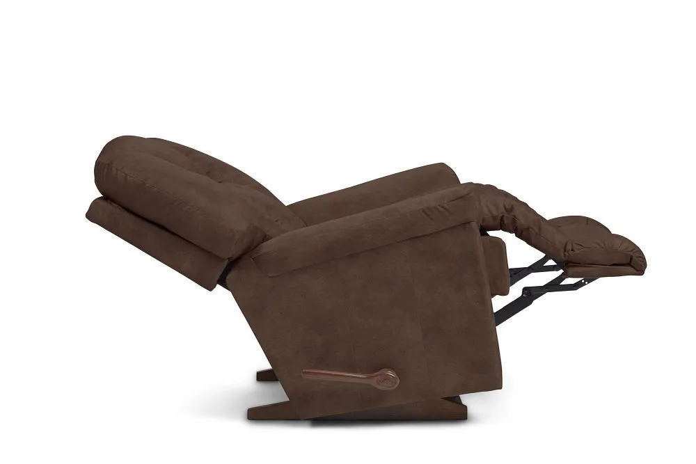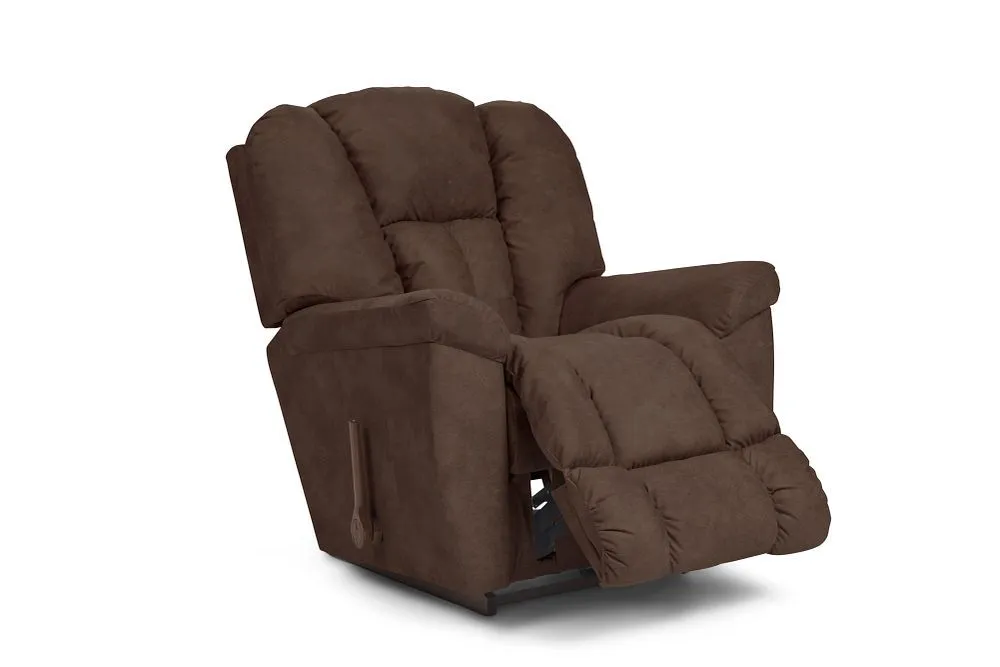 For big comfort, the Maverick Rocking Recliner is the one name you need to know. This plush family favorite is full of personality, with a chaise bucket seat, sloping padded arms and a high, biscuit-style back to deliver the ultimate in relaxation. Simply use the convenient handle on the outside arm to raise the legrest for reading, relaxing or watching TV. When you're not reclining, it's a relaxing rocker with a smooth, graceful motion. Make it yours with your choice of fabrics and other available upgrades.