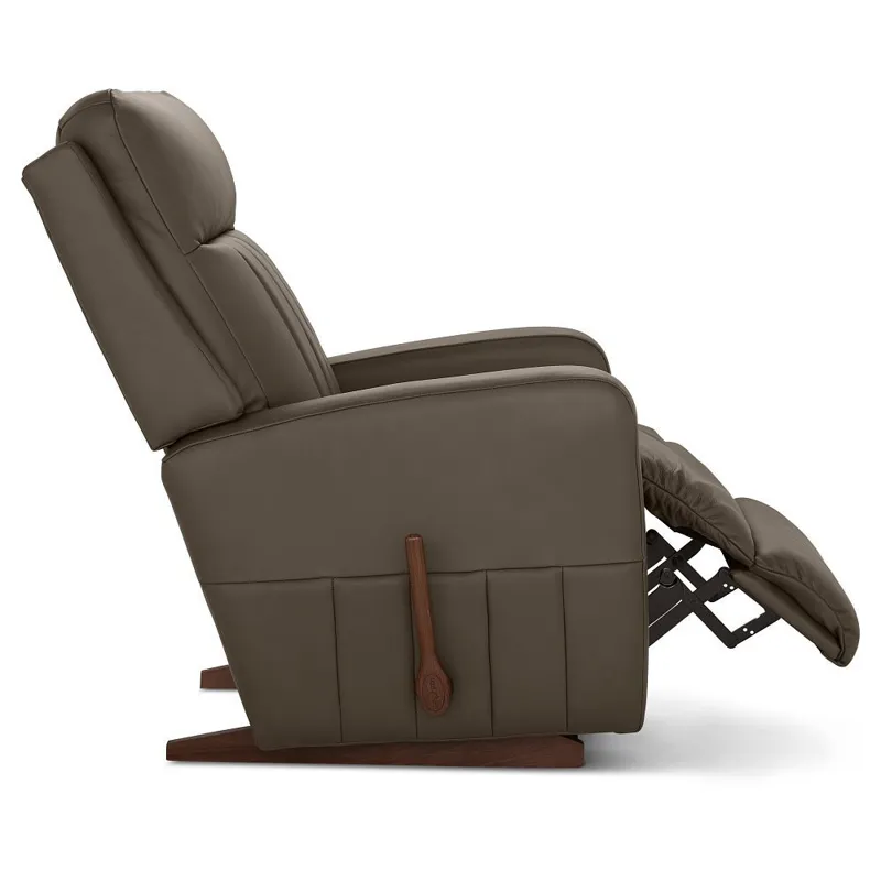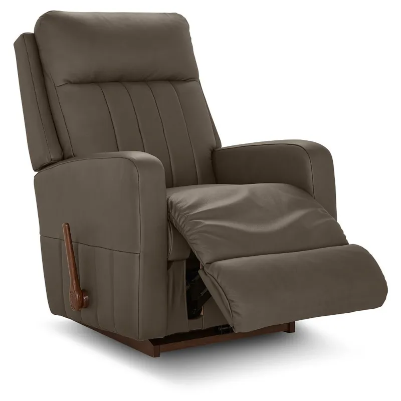 Looking for reclining comfort with contemporary style? The Finley Rocking Recliner fits the bill with modern lines, sleek track arms and a tall foam back that gives it a neat and structured look. The ultra-plush chaise seat and legrest cradle the body in a continuous zone of comfort. Simply use the convenient handle on the outside arm to raise the legrest for reading, relaxing or watching TV. When you're not reclining, it's a relaxing rocker with a smooth, graceful motion. Make it yours with your choice of fabrics and available upgrades.