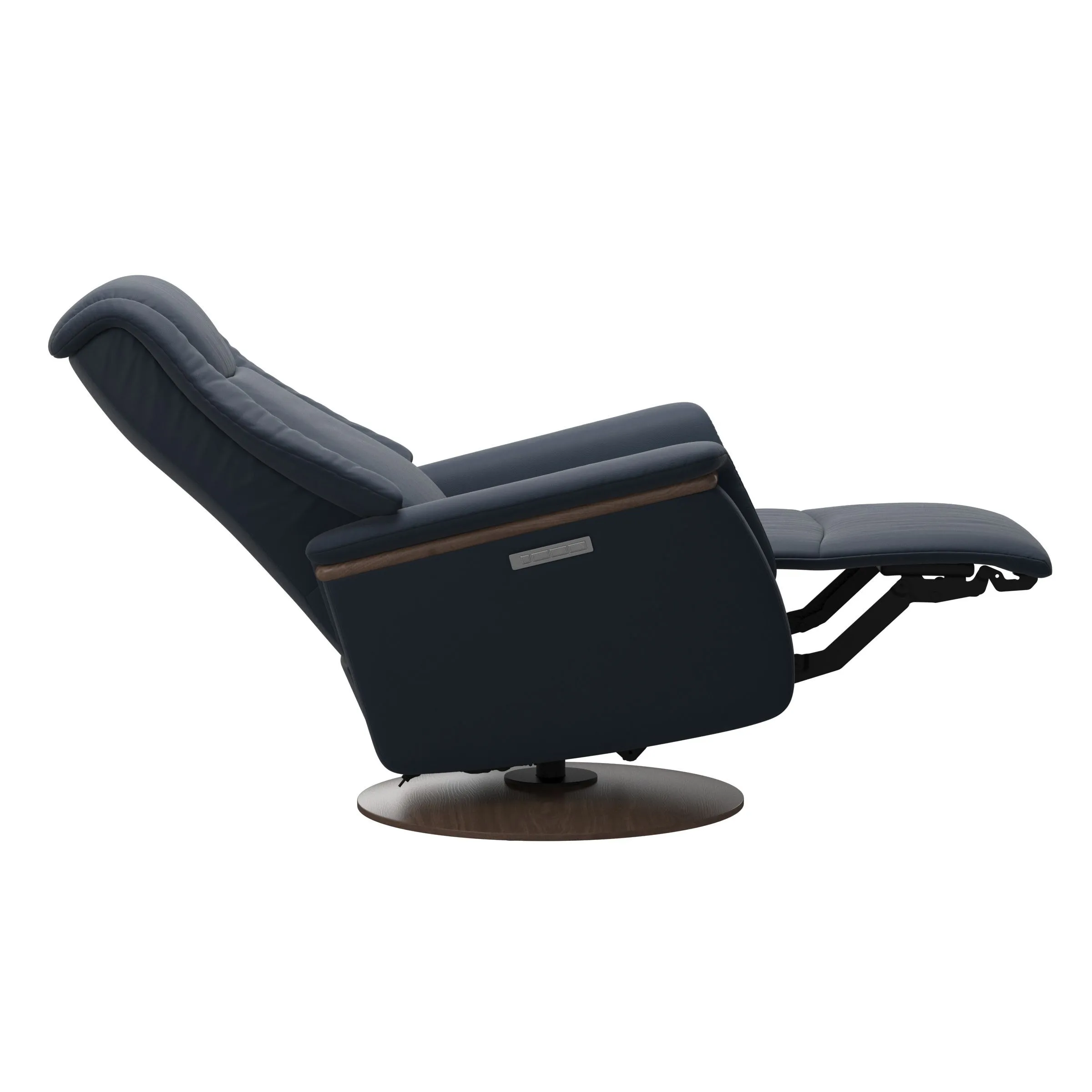 Stressless® Max has state-of-the-art technology underneath the supple, voluminous shapes. Soft and calming rocking motions offer instant comfort as you sit down. The Stressless Max relaxer has motorised adjustment of the headrest, backrest and footrest. The support can be adjusted individually to your needs – or at the touch of a button, automatically recline into a comfortable resting position.