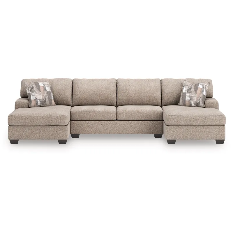 Why choose between classic comfort and modern design? This sectional with double chaise welcomes day-to-day relaxation in style. Its dimensional, menswear-inspired upholstery brings a designer touch to the easygoing silhouette. Gear up for game night or settle in to stream your favorite show—this sectional is an ideal supporting character for your living room hangs.