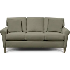 The beautiful versatility of the Brantley group will accommodate just about any taste. Its flared roll arm and contrasting toss pillows can go from traditional to contemporary without missing a beat. Ready for the fun part? Customize it! Choose from a myriad of fabric options to suit you best. This collection features a sofa, apartment sofa, loveseat, chair, ottoman, queen sleeper, and multiple sectional configurations.