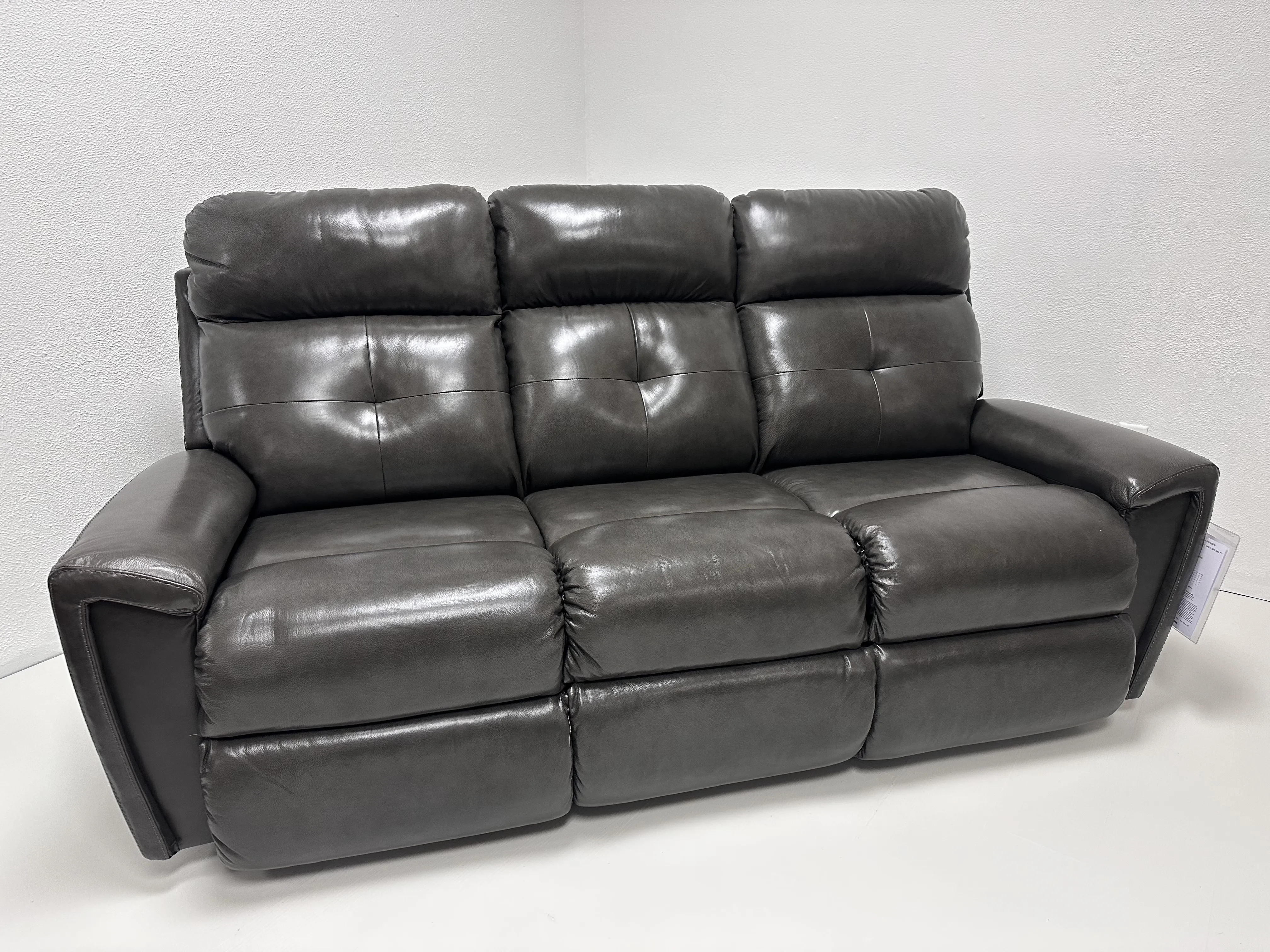 Taking its cue from modern design, the Douglas Reclining Sofa is a major update on the style front. Its streamlined silhouette is emphasized by angular padded arms and a tall back with distinctive lower back pulls and exposed wings. Detailed stitching accents Douglas' structured shape, while ultra-plush chaise seats and legrests show off its soft side. Convenient latch releases on the outside arms allow you to easily adjust the left and right backs and legrests for personalized reclining comfort, or recline without raising the legrests. Make it yours with your choice of fabrics and available upgrades.
