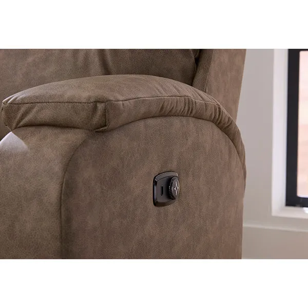 Speaking of comfort, the Maverly is available with a traditional outside handle, or with the convenience of power. Enjoy the cutting-edge design of our easy-to-use Comfort Dial that also features a USB charging port. Effortlessly recline at the turn of a dial stopping at any of your favorite positions. Deluxe your comfort by enjoying the Tilt Headrest feature for optimal head and neck support while reading or watching TV.