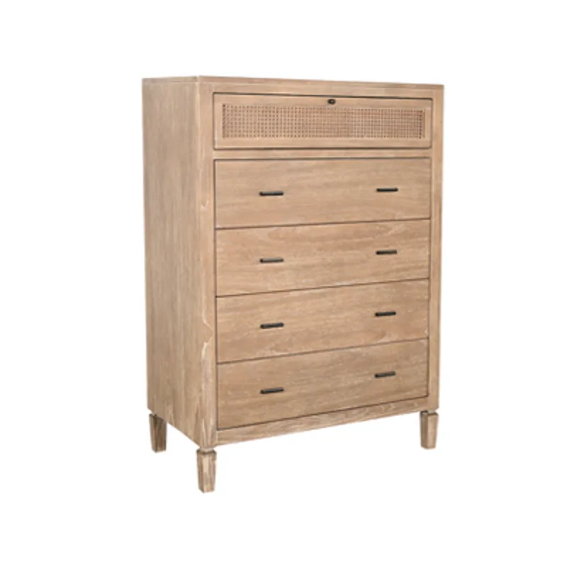 The Belinda Bedroom Set blends modern elegance with natural textures, creating a warm and inviting retreat. Crafted in Indonesia from wire-brushed Mindi solids and veneers, this beautifully designed set is available in Eastern King and Queen sizes. It includes a matching nightstand, a dresser with mirror, and a spacious chest, offering both style and functionality. With its refined craftsmanship and timeless appeal, the Belinda Bedroom Set is the perfect choice for a sophisticated and cozy bedroom.