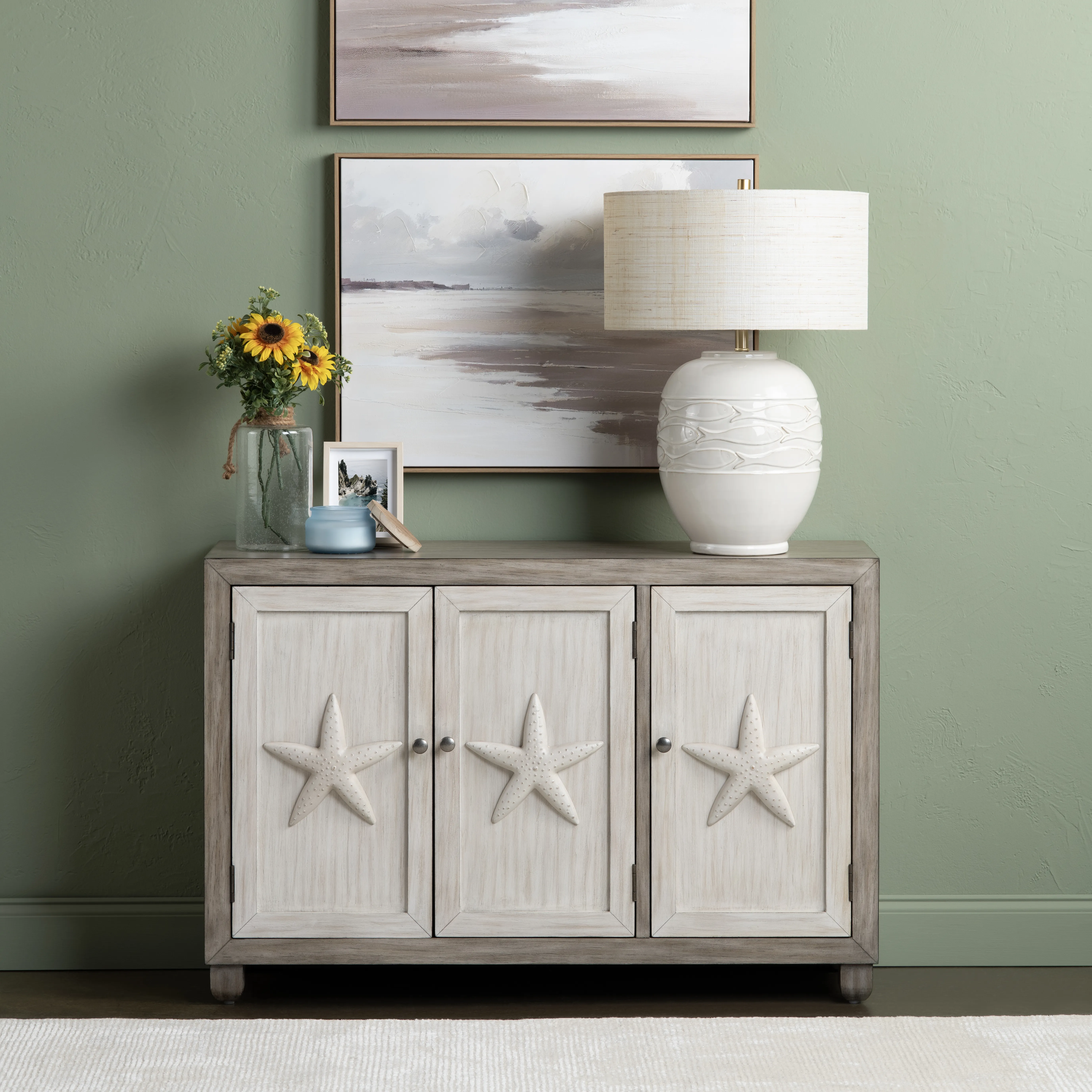 Turn movie night into a seaside escape. Sculpted starfish reliefs pop against a drift-gray case, while the 60″ Seastar cabinet stashes streaming boxes behind three soft-close doors. A slim footprint slips effortlessly into condos, cottages or casual guest rooms—anywhere you crave ocean-breeze charm without the sand.