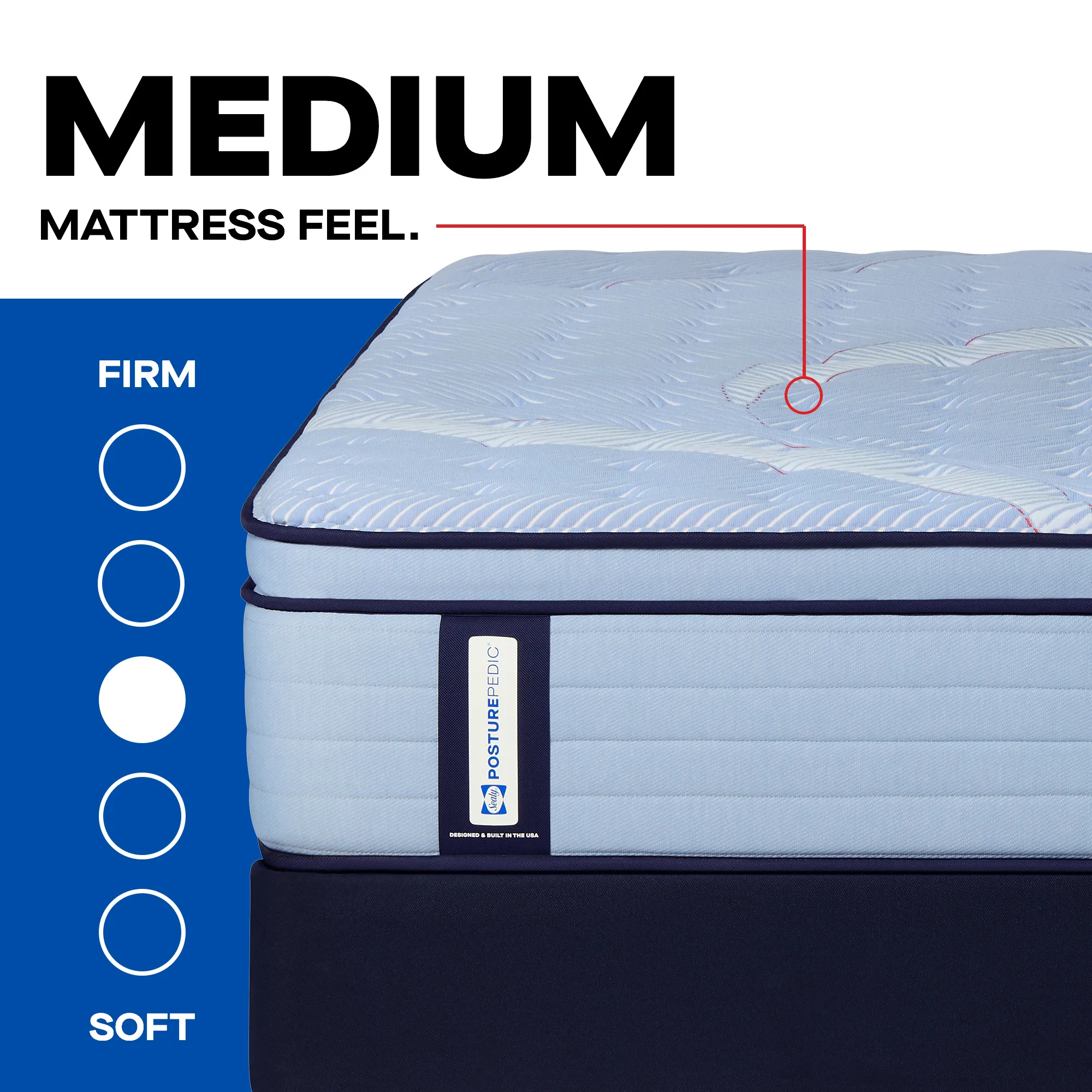 The Sealy Posturepedic® Spring Medium mattress offers lasting comfort and superior support to help maintain natural body alignment and reduce nagging Bed AchesTM. The orthopedic-inspired Posturepedic® Support System features exclusive PrecisionFit™ Coils, arranged right where you need them. Plus the Coil Edge provides a solid surface that’s built to last. Sealy® is America’s #1 Mattress Brand,* dedicated to exceeding industry standards for quality. That’s why you can expect years of reliable support and restful sleep. *Based on TraQline consumer survey for 12 months ending 12/31/23.
