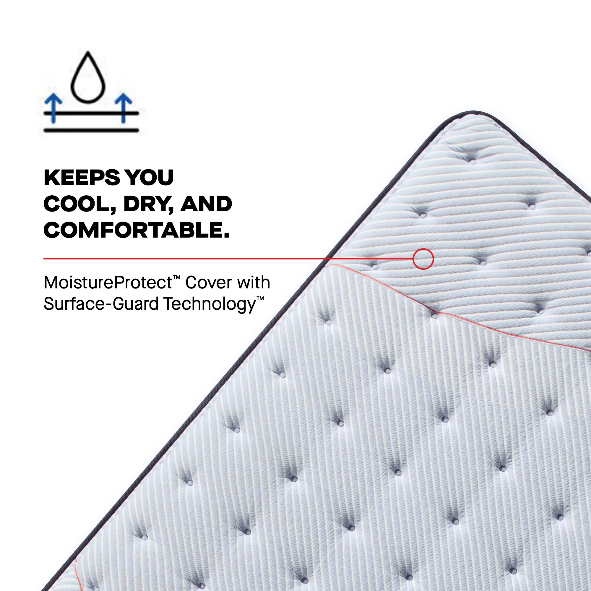 The MoistureProtect™ Cover wicks moisture away from your body to help keep you cool, dry, and comfortable all night long.