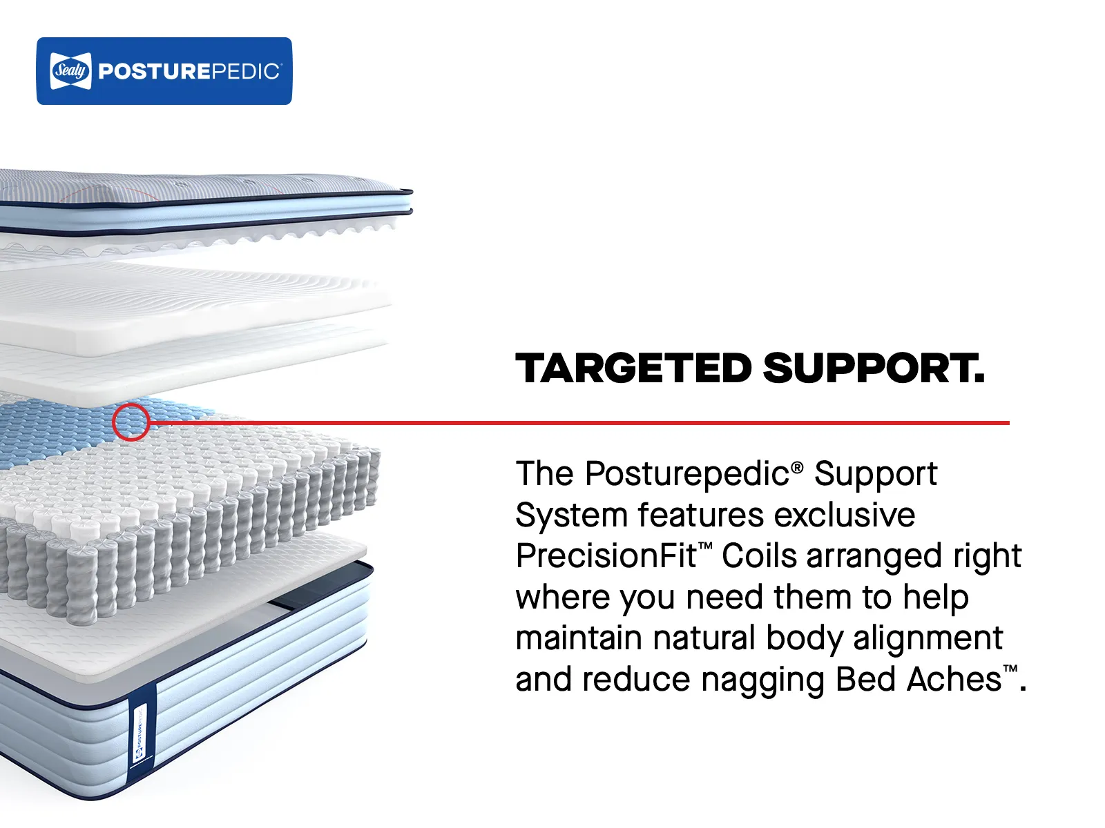 PrecisionFit™ Coils flex to your body’s individual needs, help maintain natural alignment, and reduce nagging Bed Aches™.