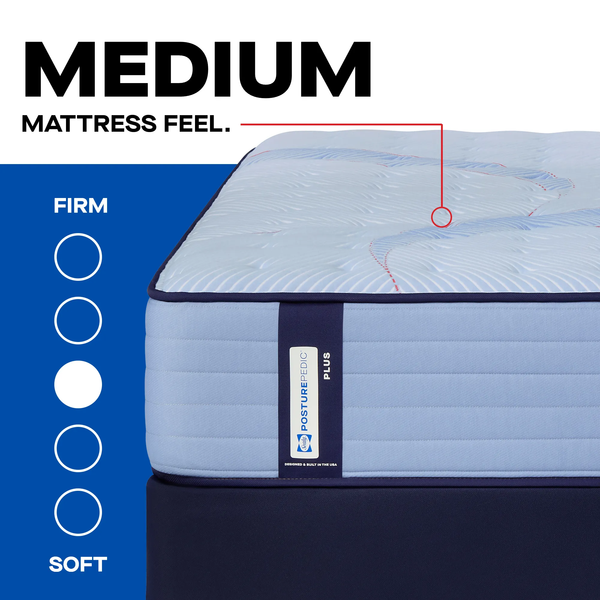 The Sealy Posturepedic® Plus Spring Medium mattress delivers pressure-relieving comfort to help maintain natural body alignment and reduce nagging Bed Aches™ night after night. The orthopedic-inspired Posturepedic® Plus Support System features exclusive PrecisionFit™ Coils, arranged right where you need them. Plus the DuraFlex™ Coil Edge provides a reinforced solid surface, making the Sealy Posturepedic® Plus Spring Medium mattress built to last.